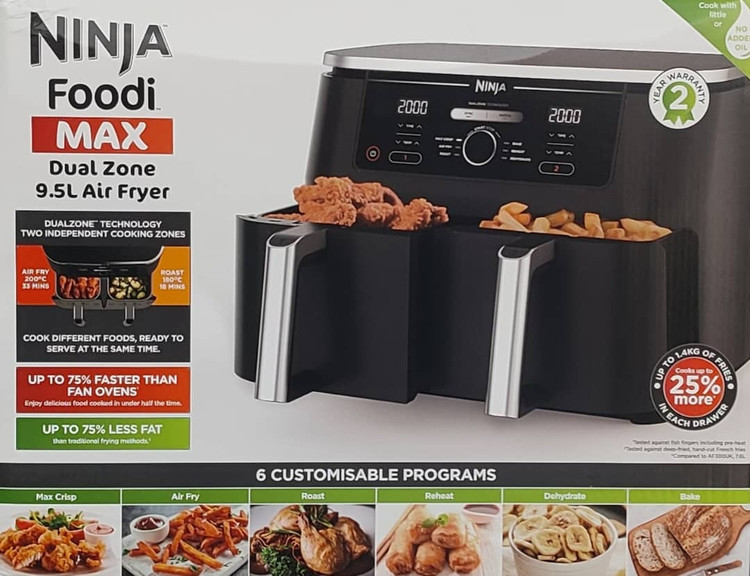 از بهترین تولیدات شرکت آمریکایی نینجا میتوان به سرخ کن دو قلو مدل AF400 اشاره کرد. این سرخ کن نینجا دارای توان مصرفی 2470 وات میباشد که در نوع خود عالی به نظر میرسد. این مدل دارای قابلیت پخت بدون روغن میباشد که میتوان یک سیب زمینی را تا 80 درصد چربی کمتر سرخ کرد البته لازم به ذکر است که اصلا طعم و مزه مواد غذایی تغییری نمیکند.